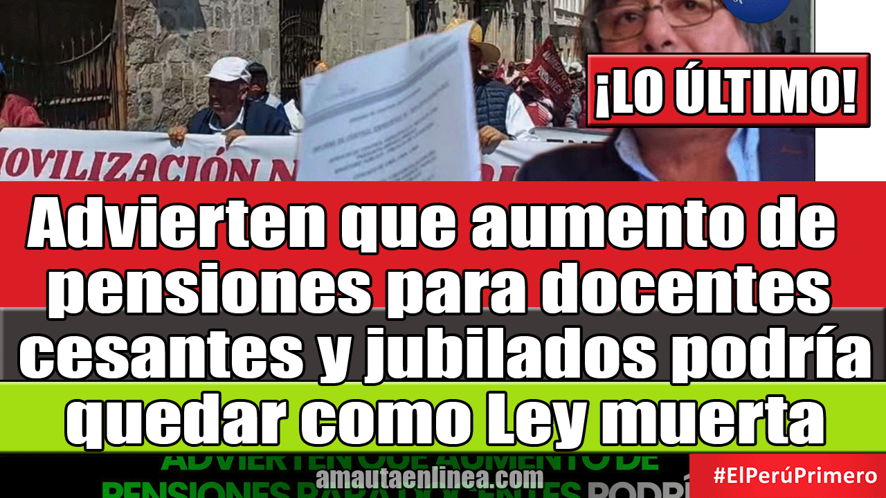 Advierten que aumento de pensiones para docentes cesantes y jubilados podría quedar como Ley muerta