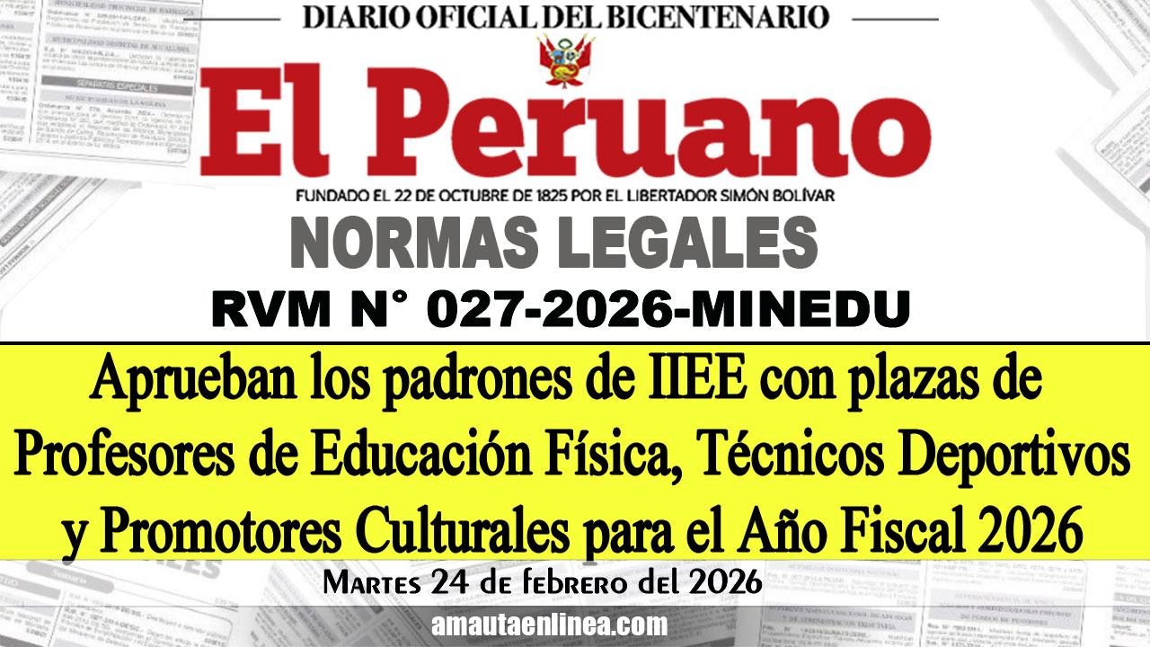 Aprueban los padrones de Instituciones Educativas Públicas con plazas de Profesores de Educación Física, Técnicos Deportivos y Promotores Culturales para el Año Fiscal 2026