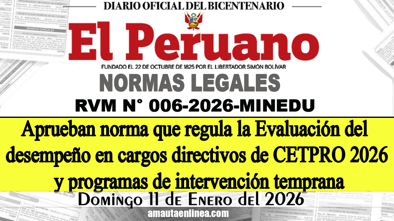 Aprueban la Norma Técnica denominada “Norma que regula la Evaluación del desempeño en cargos directivos de Centros de Educación Técnico-Productiva y Programas de Intervención Temprana – 2026, en el marco de la Ley N° 29944, Ley de Reforma Magisterial”