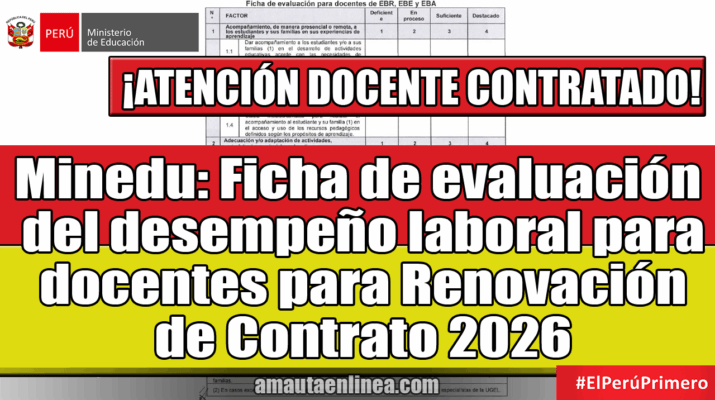 Minedu: Ficha de evaluación del desempeño laboral para docentes para Renovación de Contrato 2026 ¡IMPORTANTE!