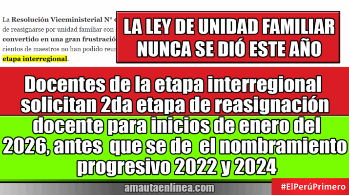 Maestros de la etapa interregional solicitan 2da etapa de reasignación docentes antes que se adjudique a los docentes del nombramiento progresivo 2022 y 2024
