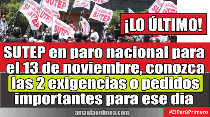 SUTEP en paro nacional para el 13 de noviembre conozca las 2 exigencias importantes para ese dia ¡Atención docente!