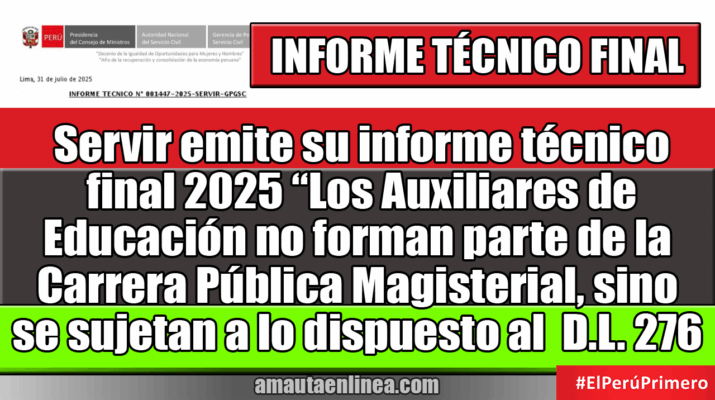 Servir emite su informe técnico final 2025 Los auxiliares de educación no forman parte de la carrera pública magisterial sino se sujetan al DS 276 personal administrativo