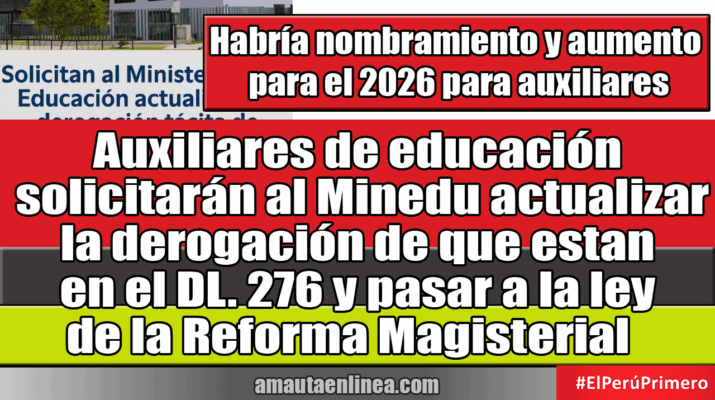 Minedu: Auxiliares de educación solicitarán al Minedu actualizar la derogación de que estan en la ley 276 y pasar a la ley 31772