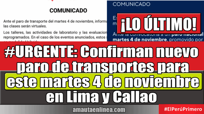 Paro de transportes para este martes 4 de noviembre en Lima y Callao ¡LO ÚLTIMO!