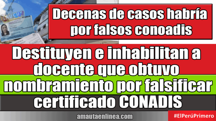 Minedu: Destituyen e inhabilitan a docente que obtuvo nombramiento por falsificar certificado CONADIS