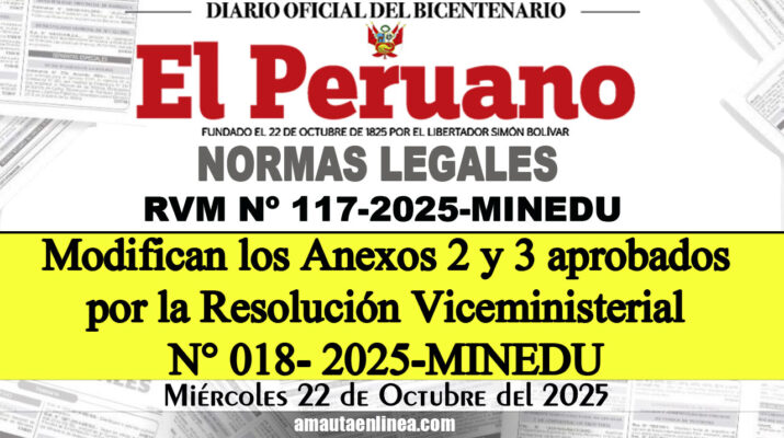 Modifican los Anexos 2 y 3 aprobados por la Resolución Viceministerial N° 018- 2025-MINEDU Resolución Viceministerial Nº 117-2025-MINEDU Lima, 21 de octubre de 2025