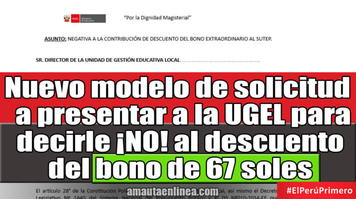 Modelo de solicitud a presentar a la UGEL para decirle NO al descuento del bono de 67 soles