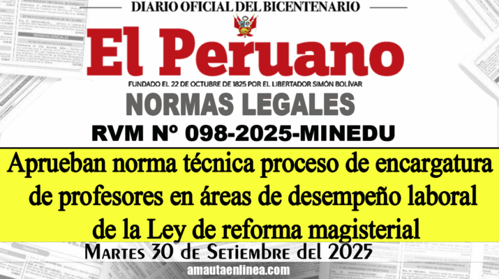 Aprueban norma técnica proceso de encargatura de profesores en áreas de desempeño laboral de la Ley de reforma magisterial