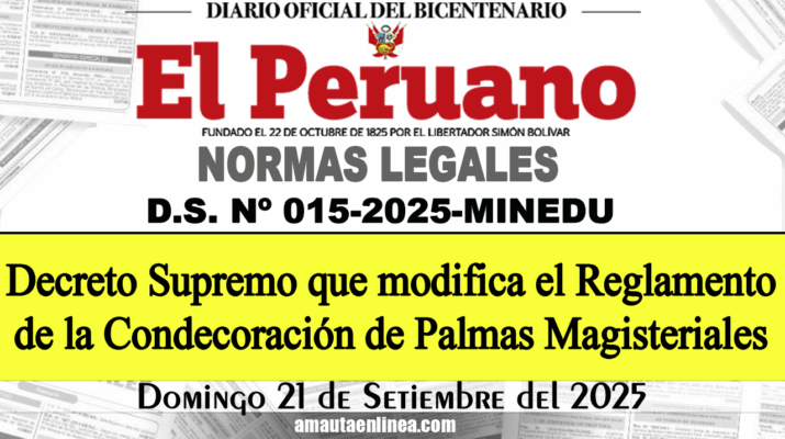 Decreto Supremo que modifica el Reglamento de la Condecoración de Palmas Magisteriales aprobado por Decreto Supremo N° 007-2019-MINEDU Decreto Supremo Nº 015-2025-MINEDU LA PRESIDENTA