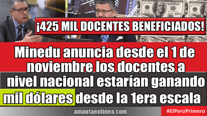 Minedu anuncia desde el 1 de noviembre los docentes a nivel nacional estarían ganando mil dólares desde la primera escala ¡Atención docente!