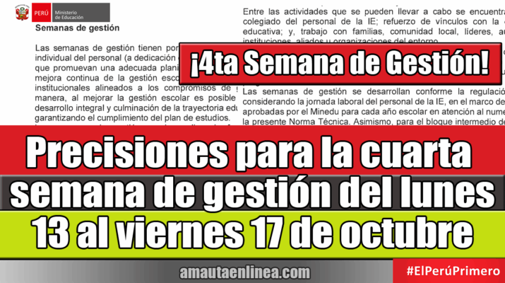 Minedu: Precisiones para la cuarta semana de gestión del lunes 13 al viernes 17 de octubre ¡Atención docente!