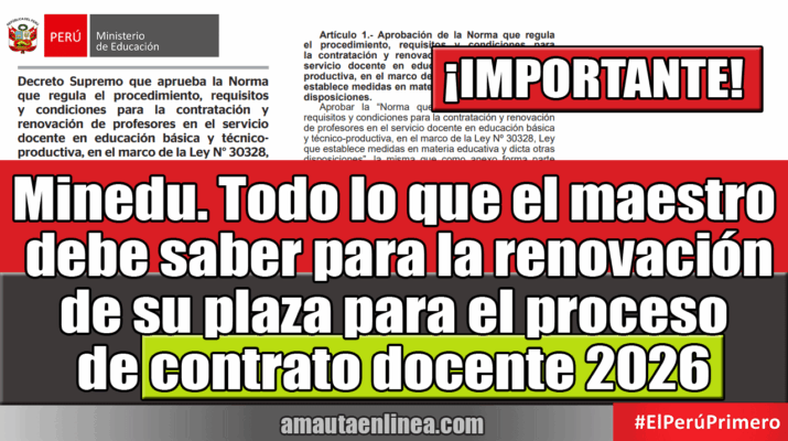 Minedu: Todo lo que el maestro debe saber para la renovación de su plaza para el contrato docente 2026 ¡IMPORTANTE!
