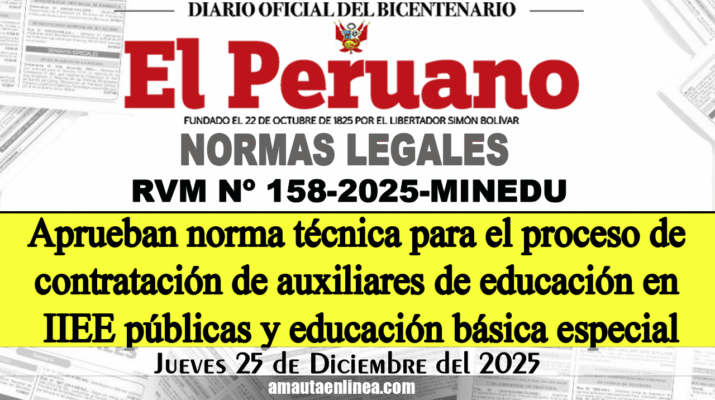 Aprueban norma técnica denominada “Norma que regula el proceso para la contratación de auxiliares de educación en las instituciones educativas públicas de Educación Básica