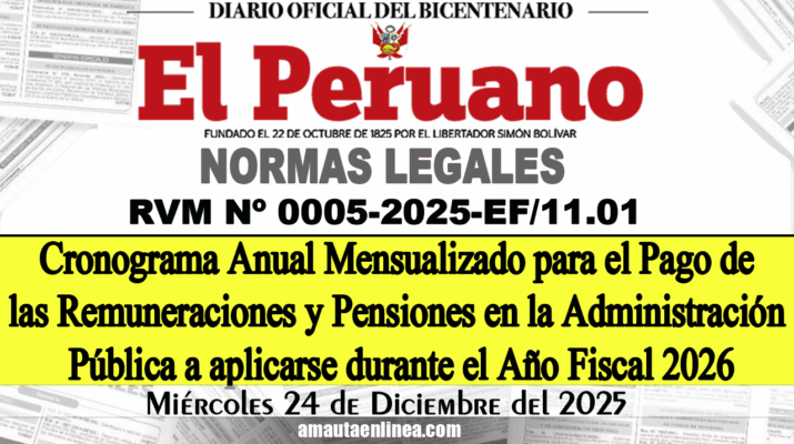 Cronograma Anual Mensualizado para el Pago de las Remuneraciones y Pensiones en la Administración Pública a aplicarse durante el Año Fiscal 2026