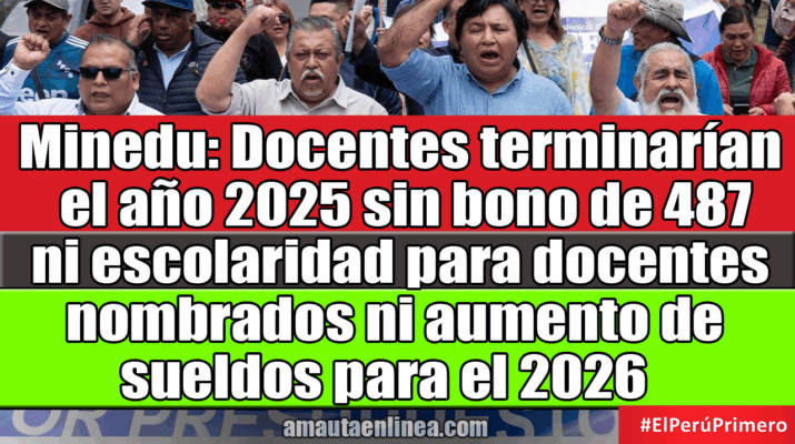 Minedu: Docentes terminarían Diciembre sin bono de 487 ni escolaridad para docentes nombrados ni aumento de sueldos para el 2026