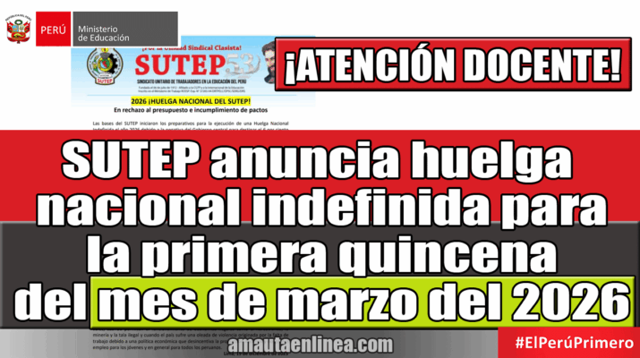 SUTEP anuncia huelga nacional indefinida para la primera quincena del mes de marzo del 2026 ¡ATENCIÓN DOCENTE!
