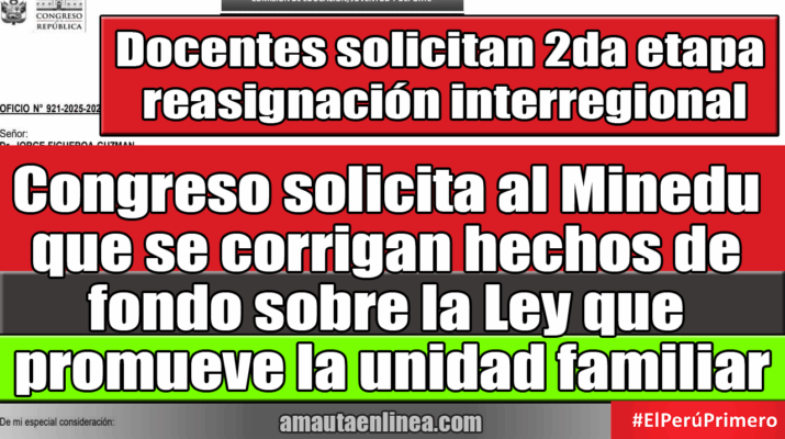 Congreso solicita al Minedu que se corrigan hechos de fondo sobre la Ley que promueve la unidad familiar