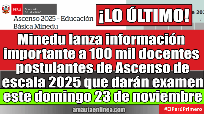 Minedu lanza información a los cerca de 100 mil docentes postulantes de Ascenso de escala 2025 que darán examen este domingo 23 de noviembre