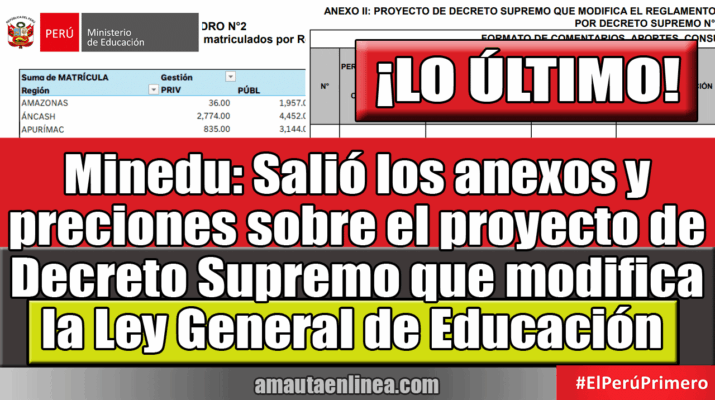 Minedu: Salió los anexos y preciones sobre el proyecto de Decreto Supremo que modifica la Ley General de Educación