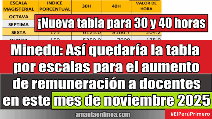 Minedu: Así quedaría la tabla por escalas para el aumento de remuneración en este mes de noviembre 2025 para docentes nombrados y contratados ¡Atención Docente!