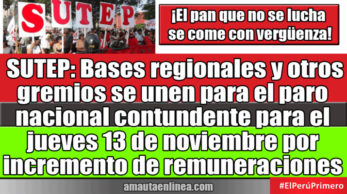 ¡JUEVES 13 DE NOVIEMBRE, PARO NACIONAL DEL SUTEP: 6% DEL PBI PARA EL SECTOR EDUCACIÓN, LO DICE LA CONSTITUCIÓN! AUMENTO DE REMUNERACIONES PARA EL