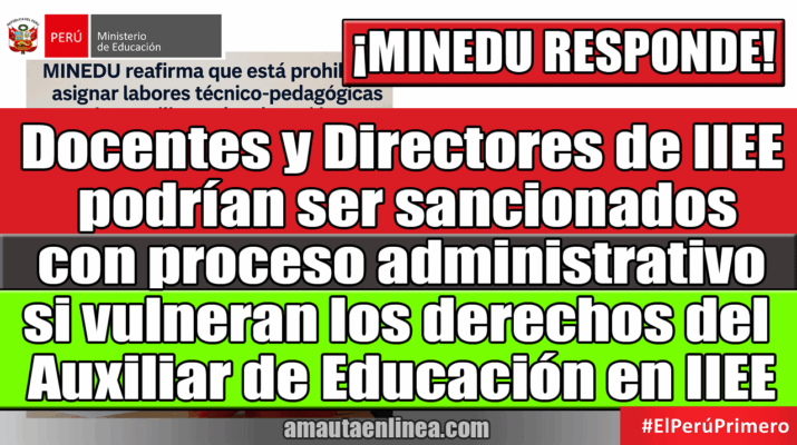 Minedu: Docentes y Directores de IIEE podrían ser sancionados con proceso administrativo si vulneran los derechos del Auxiliar de Educación en IIEE