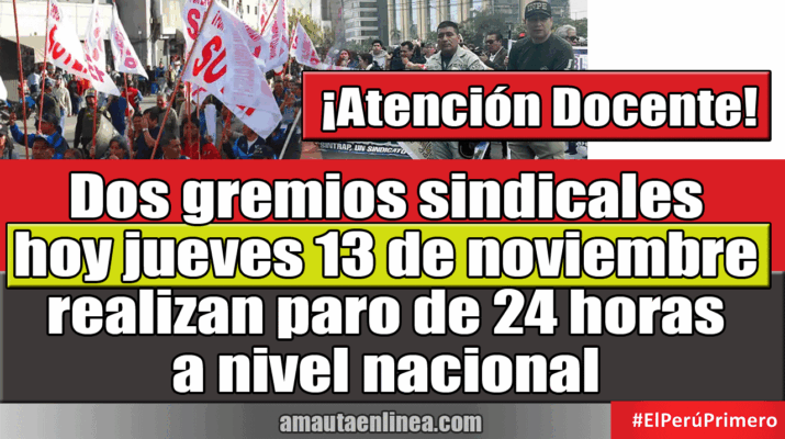 Dos gremios sindicales hoy jueves 13 de noviembre realizan paro de 24 horas a nivel nacional