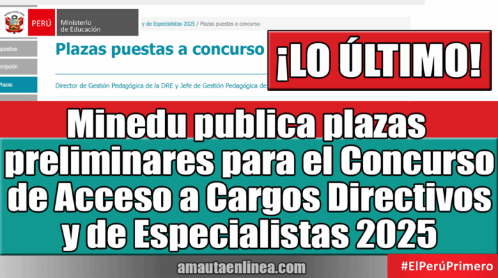 Minedu publica plazas preliminares para el Concurso de Acceso a Cargos Directivos y de Especialistas 2025