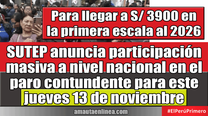 SUTEP anuncia participación masiva a nivel nacional en el paro contundente para mañana jueves 13 de noviembre del 2025