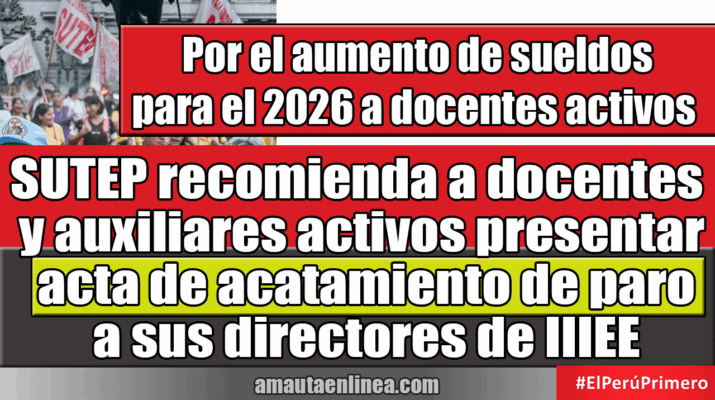 SUTEP recomienda a docentes y auxiliares presentar acta de acatamiento de paro a sus directores de IIIEE
