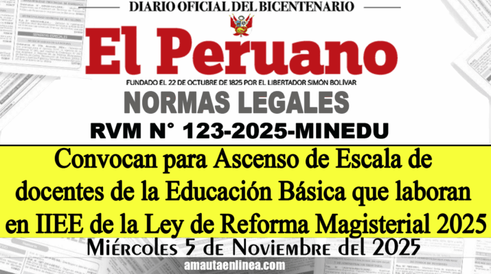 Convocan para Ascenso de Escala de docentes de la Educación Básica que laboran en IIEE de la ley de reforma magisterial 2025