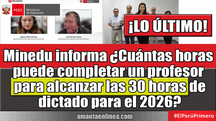 Minedu informa ¿Cuántas horas puede completar un profesor para alcanzar las 30 horas de dictado para el 2026?