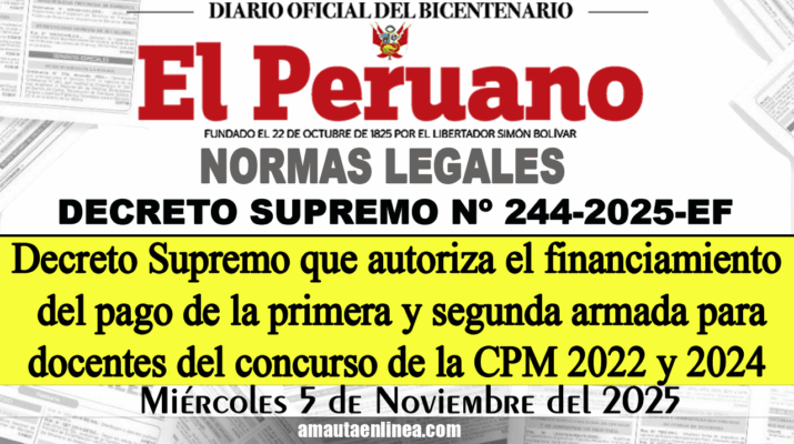 Decreto Supremo que autoriza el financiamiento del pago de la primera y segunda armada del bono de 18 mil soles para docentes del concurso 2022 y 2024 de la CPM