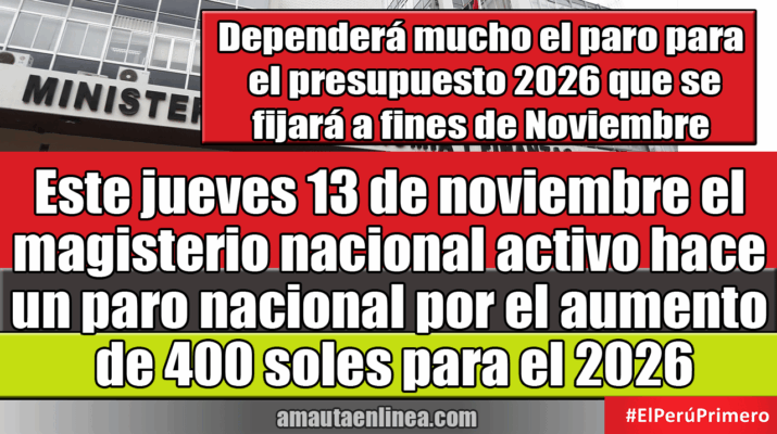 Este jueves 13 de noviembre el magisterio nacional activo hace un paro a sus actividades por el aumento de 400 soles para el 2026