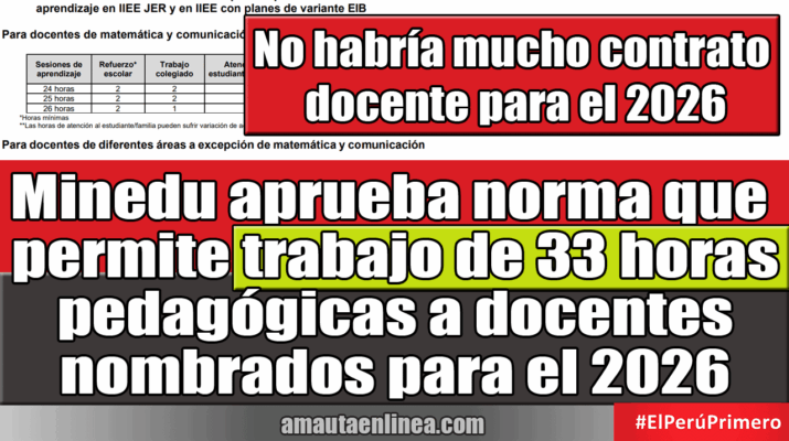 Minedu aprueba norma que permite trabajo de 33 horas pedagógicas a docentes nombrados 2026