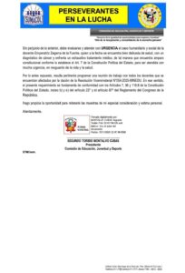 Tengo el agrado de dirigirme a usted para saludarlo cordialmente, y a la vez atendiendo diversos reclamos y denuncias de los docentes de las diferentes regiones de nuestro pais, que se encuentran dentro de los alcances de la ley 32338, Ley que promueve la unidad familiar en la carrera pública magisterial, modificando el artículo 68 de la ley 29944, ley de reforma magisterial, quienes vienen solicitando a la comisión de educación, se atienden sus pedidos y solicitudes sobre la reasignación docente y permuta, señalando que a la fecha vienen siendo ignorando y observados por la diferentes UGEL de las regiones del interior de nuestro pais, en vista que la resolución viceministerial Nº 054-2025-minedu, del 30 de mayo de 2025, habría transgredido la naturaleza y esencia de la Ley Nº 32238, Ley que promueve la unidad familiaren la carrera pública magisterial, modificando el artículo 68 de la Ley Nº 29944, Ley de reforma Magisterial.
