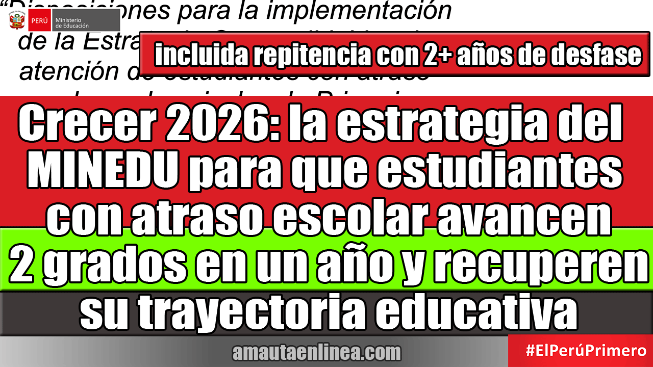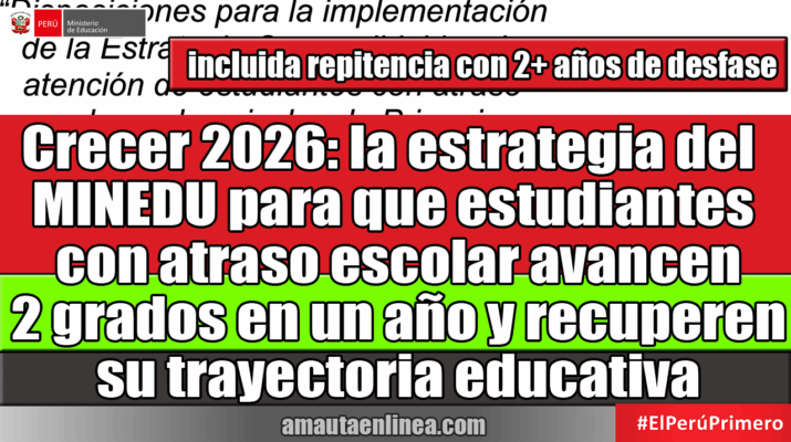 La norma busca garantizar la continuidad de la trayectoria educativa atendiendo a estudiantes con atraso escolar en primaria y secundaria en IIEE públicas (urbano y rural).
