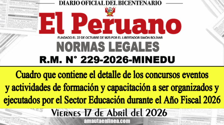 Modifican el Anexo de la Resolución Ministerial N° 087-2026-MINEDU, que aprueba el Cuadro que contiene el detalle de los concursos, eventos y actividades de formación y capacitación a ser organizados y ejecutados por el Sector Educación durante el Año Fiscal 2026