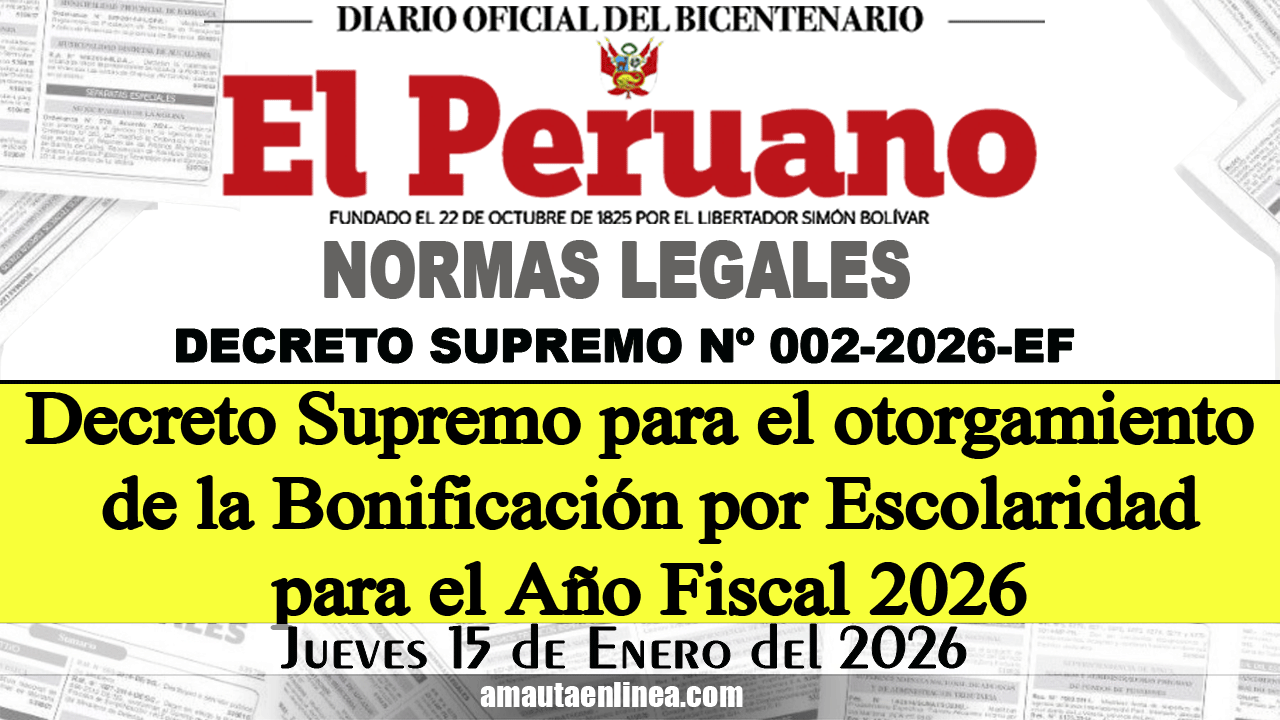 Decreto Supremo que dicta disposiciones reglamentarias para el otorgamiento de la Bonificación por Escolaridad para el Año Fiscal 2026