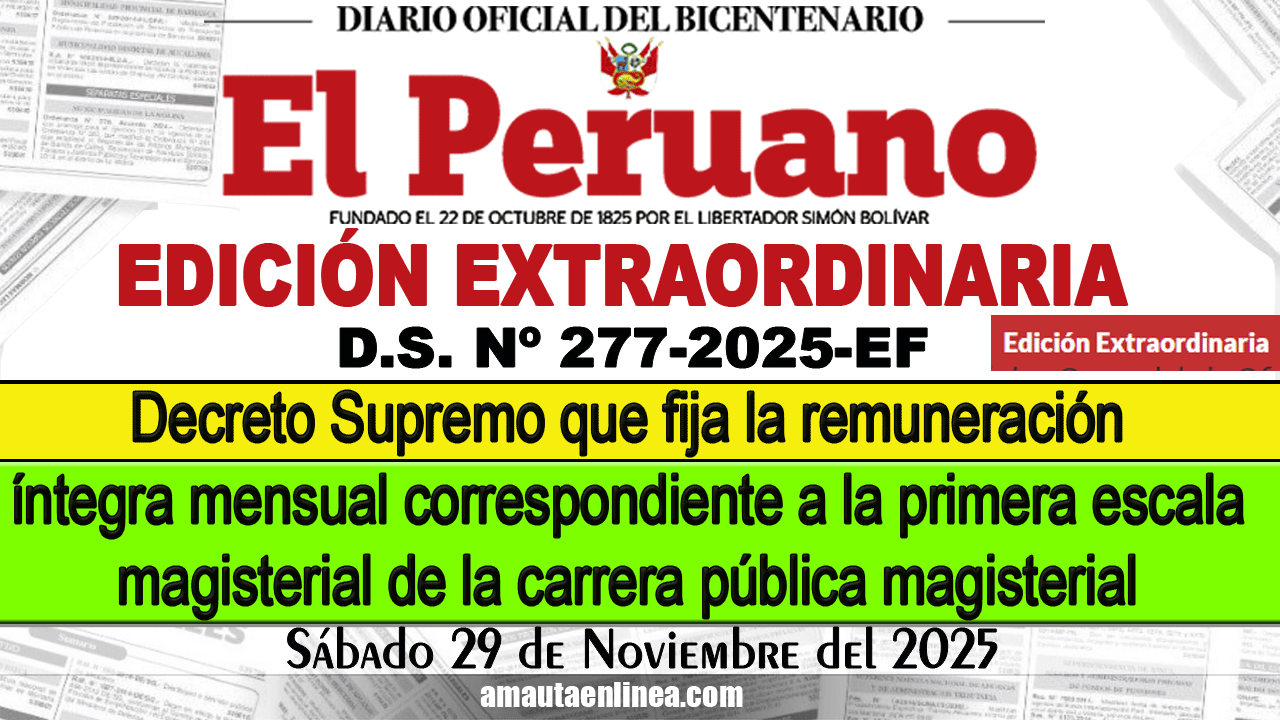Que, mediante Decreto Supremo Nº 049-2025-EF, se fija la Remuneración Íntegra Mensual correspondiente a la Primera Escala Magisterial de la Carrera Pública Magisterial de la Ley Nº 29944, la remuneración mensual del profesor contratado en el marco de la Ley Nº 30328 y el monto de la asignación por jornada de trabajo adicional;