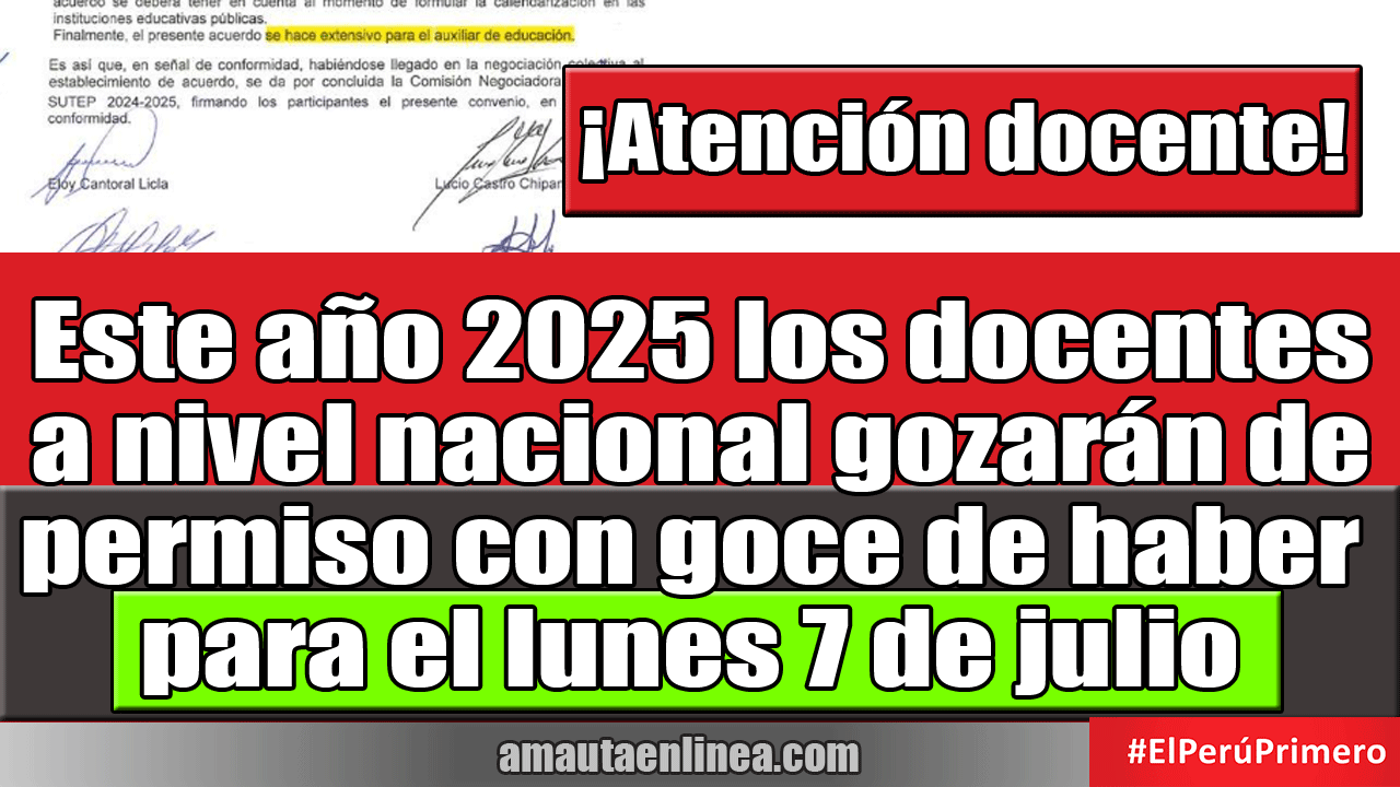 El Ministerio de Educación, emitirá un oficio múltiple efectuando precisiones, respecto al permiso por el dia del maestro, considerando para los años 2024 y 2025 se tomará el primer día hábil posterior al 6 de julio como no laborable, para las Instituciones Educativas públicas del ámbito nacional.