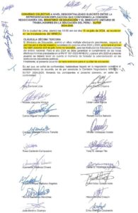 Convenio colectivo a nivel descentralizado suscrito entre la representación empleadora que conforman la comisión negociadora del Ministerio de Educación y el Sindicato Unitario de Trabajadores de la Educación del Perú- SUTEP (2024-2025)