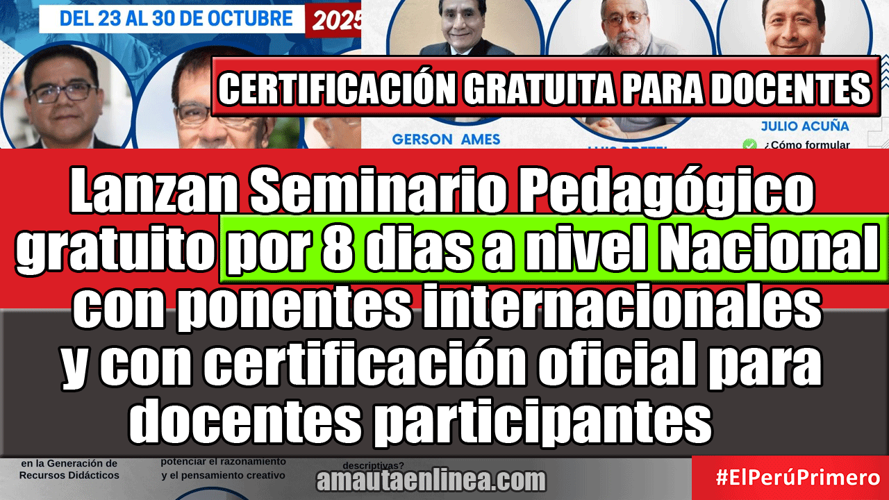Lanzan Seminario Pedagógico gratuito por 8 dias a nivel Nacional con ponentes internacionales y con certificación oficial para docentes participantes