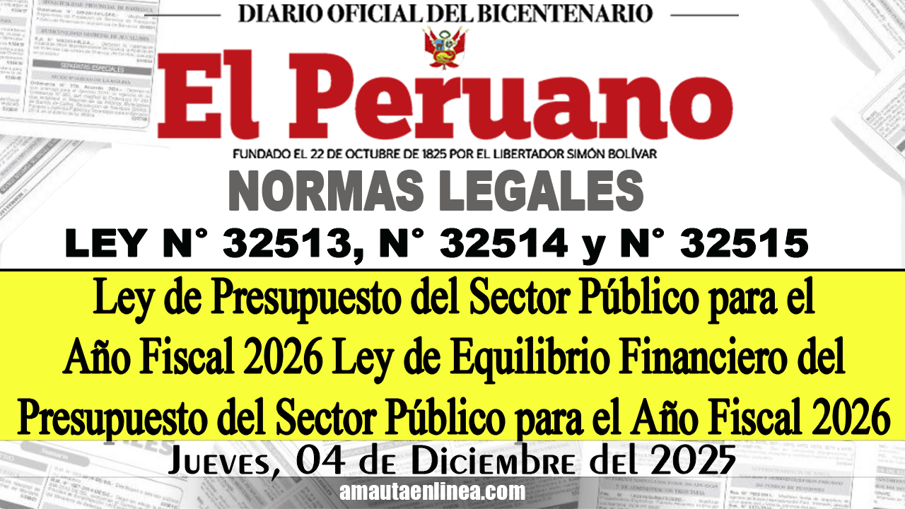 Ley N° 32514.- Ley de Equilibrio Financiero del Presupuesto del Sector Público para el Año Fiscal 2026