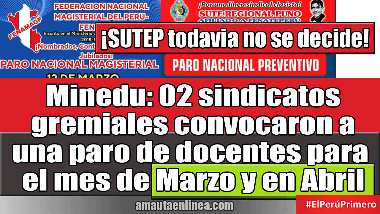 Asimismo, hacemos conocer que, conforme a los acuerdos arribados en la Asamblea Nacional Presencial de fecha 24 y 25 de enero, ratificado en la Asamblea Nacional Virtual del 21 de febrero del presente, convocamos al magisterio en general a fin de asumir y acatar el Paro Nacional del 1ro. de Abril, PARO NACIONAL DE LA FENATEPERÚ, a fin de exigir atención y solución a las demandas del pliego Nacional de reclamos. Dentro de ellos, los más importantes son: