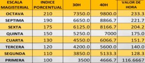 Nueva tabla remunerativa por escala magisterial para este mes de noviembre 2025