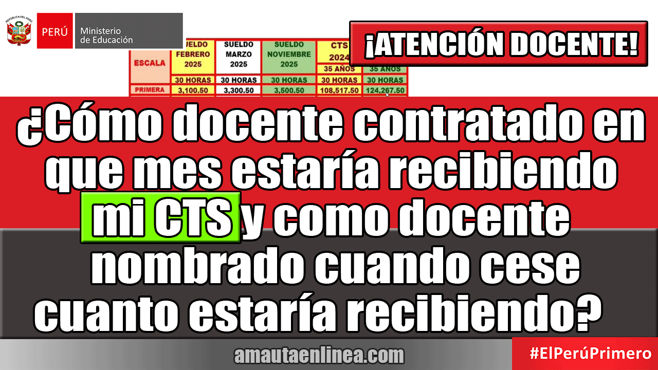 Estimados docentes muchos docentes por la finalización del año escolar 2025 se preguntan ¿Cuánto estaría recibiendo mi cts como docente de primera escala y siendo contratado?