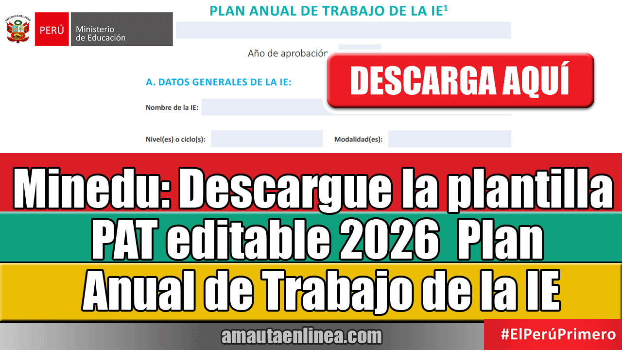 Estimados docentes queremos compartir la plantilla PAT editable 2026 ACTUALIZADO Plan Anual de Trabajo de la IE