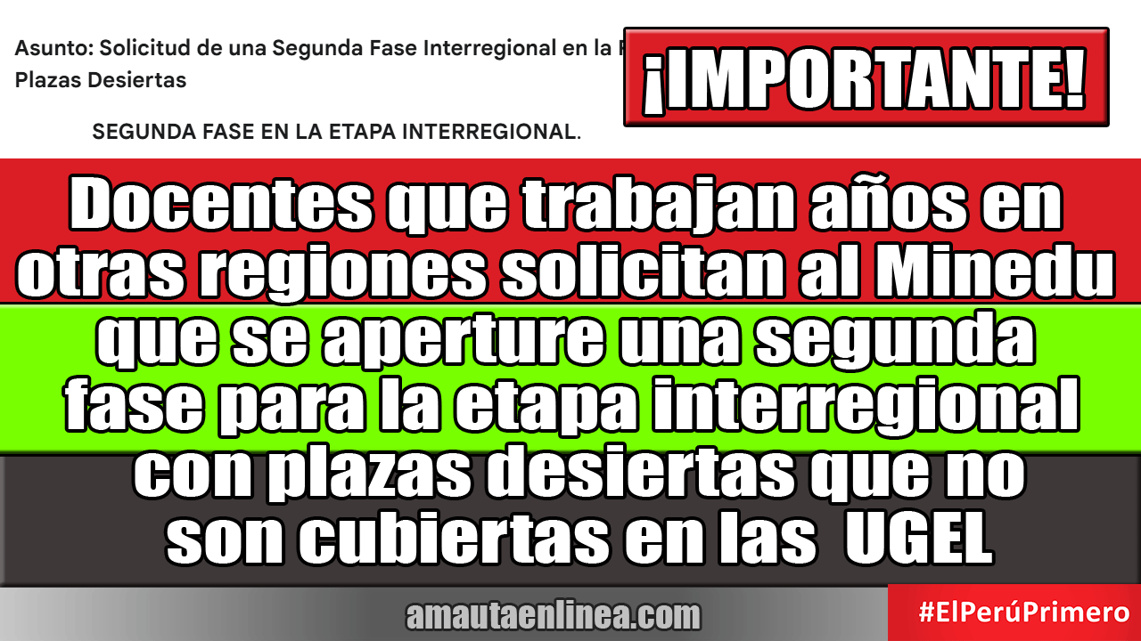Comprendemos que, inevitablemente, después de esta fase única quedarán plazas vacantes desiertas en diversas UGEL del país. Esto representa una oportunidad perdida para cientos de docentes que anhelamos alcanzar la unidad familiar o un desarrollo profesional, y también para las instituciones educativas que necesitan cubrir esas plazas.